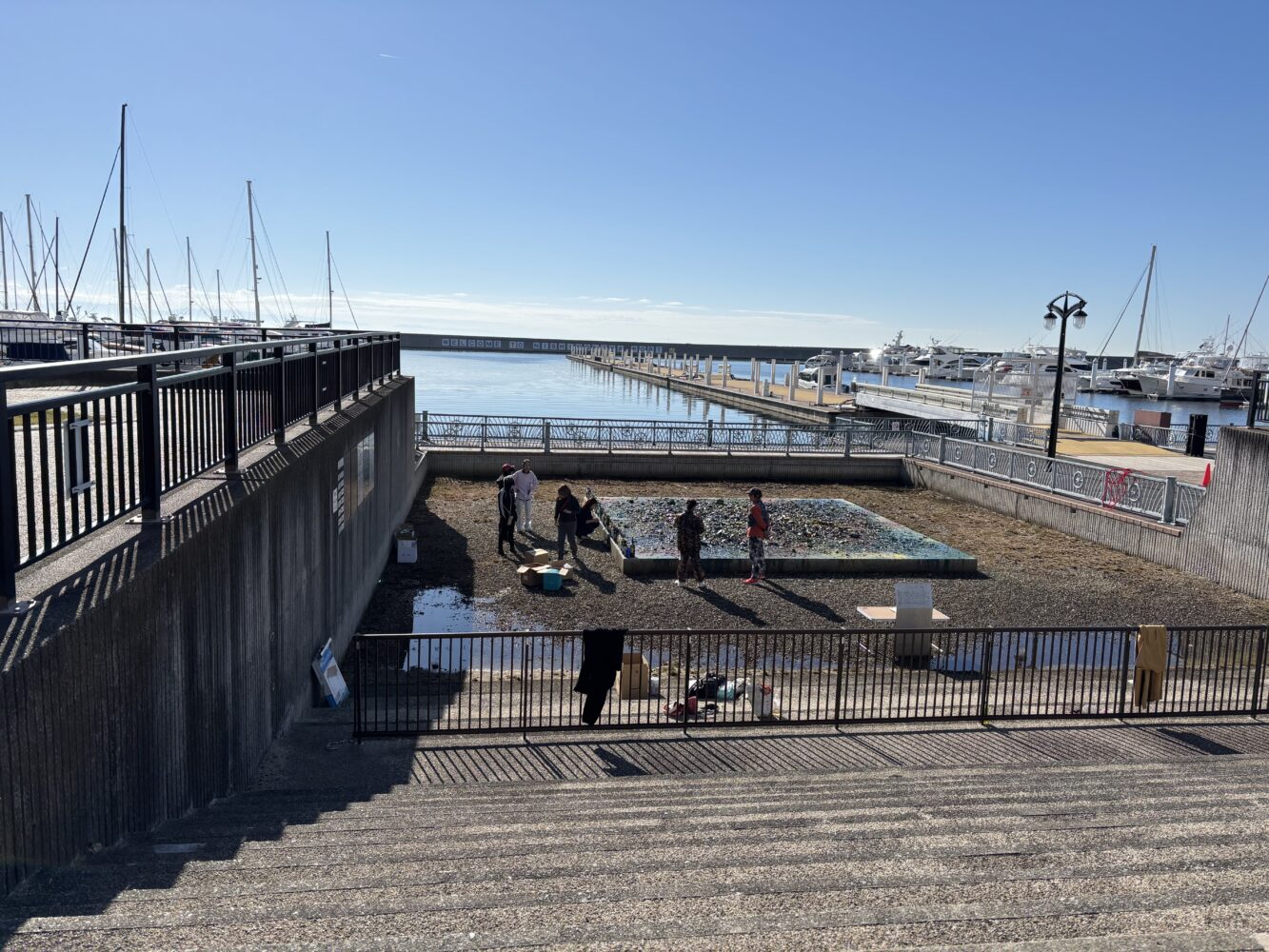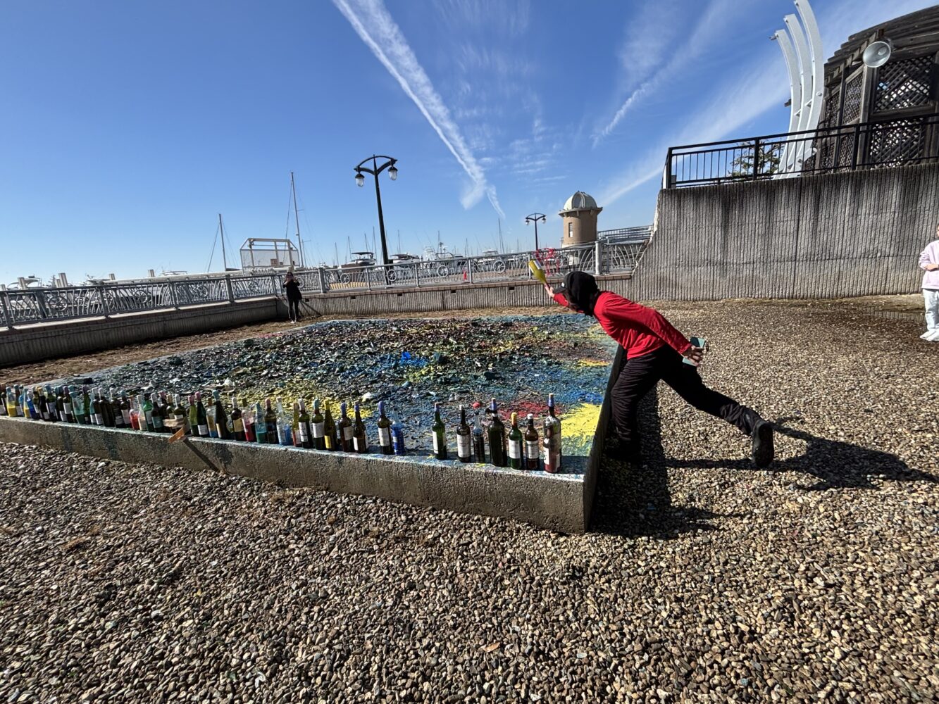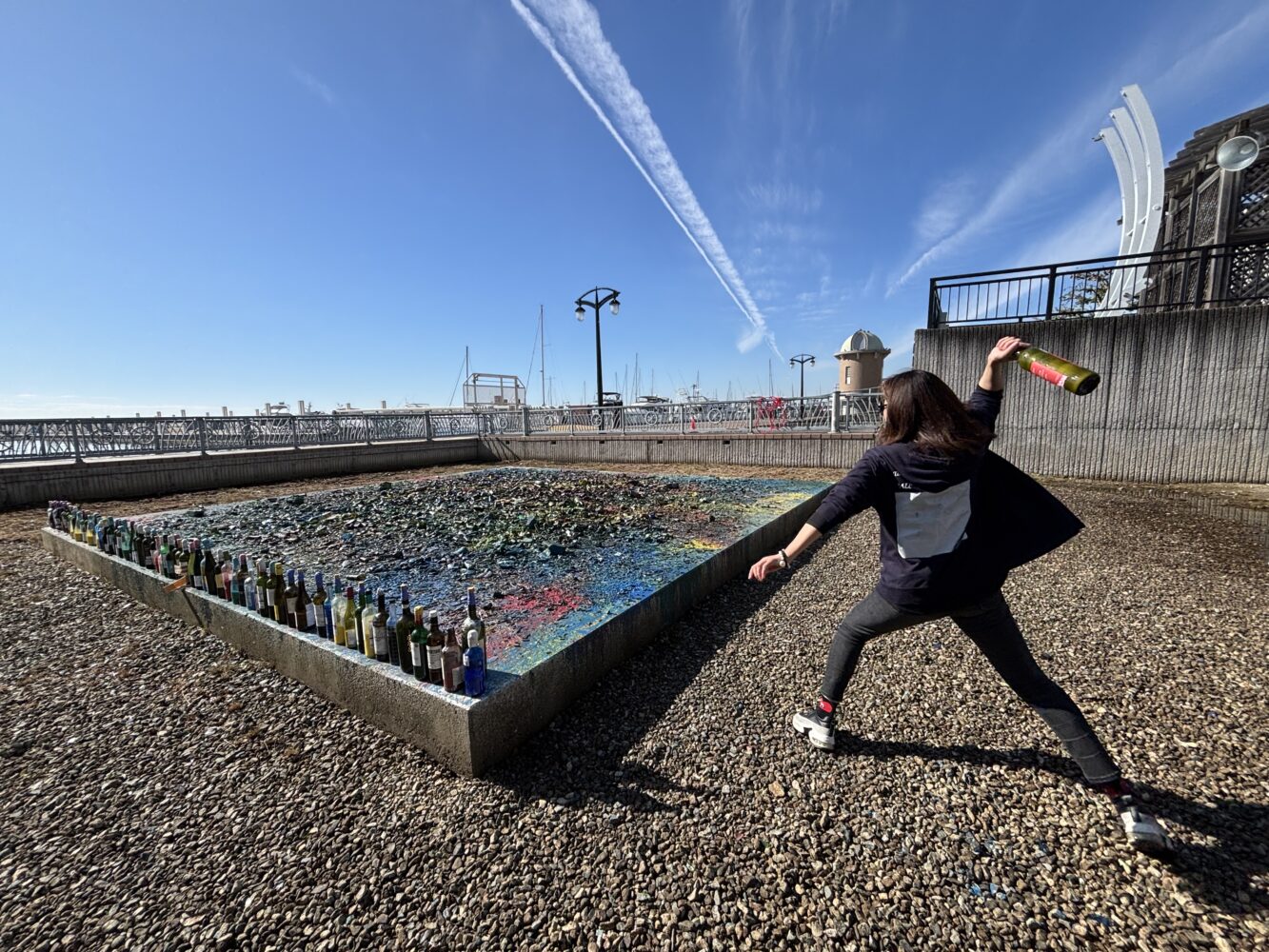 晴天の11月23日(日)!新西宮ヨットハーバーで開催されたアート集団「AU」の皆さんのビン投げパフォーマンスに参加させていただきました。