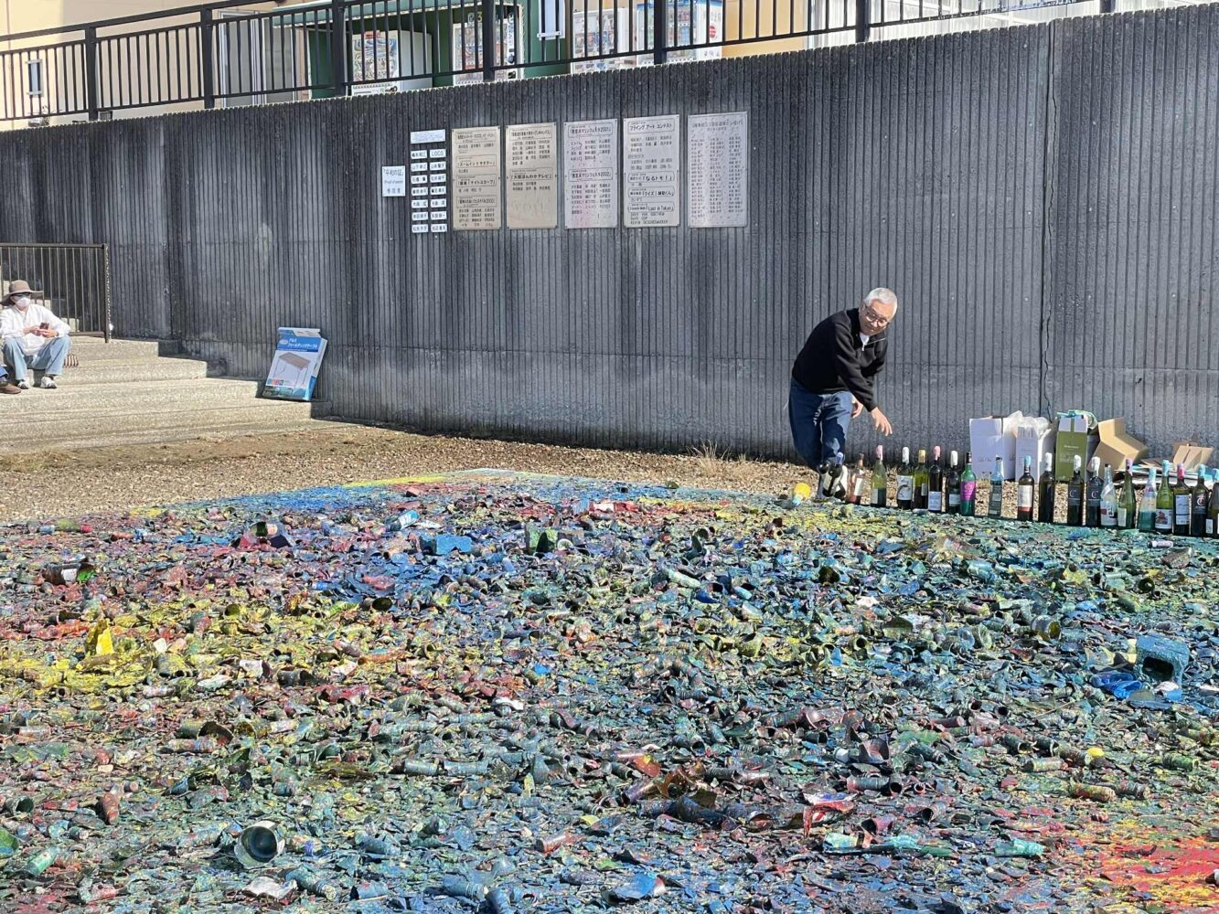 はい!ご馳走様でした!😋😋😋❝午後からは近くの小学生達も❝ビン投げパフォーマンス❞に参加!この人達は、100年アートの完成の目撃者になることでしょう