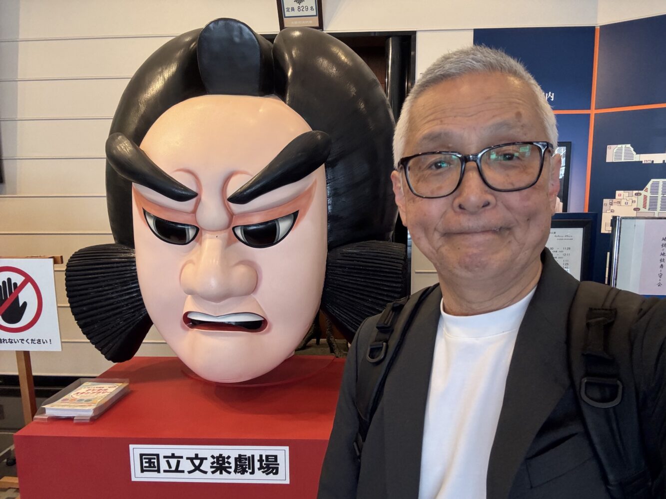 一階入った正面にこの大きな文楽の顔人形が設置してあって、毎回撮らせていただいていますw