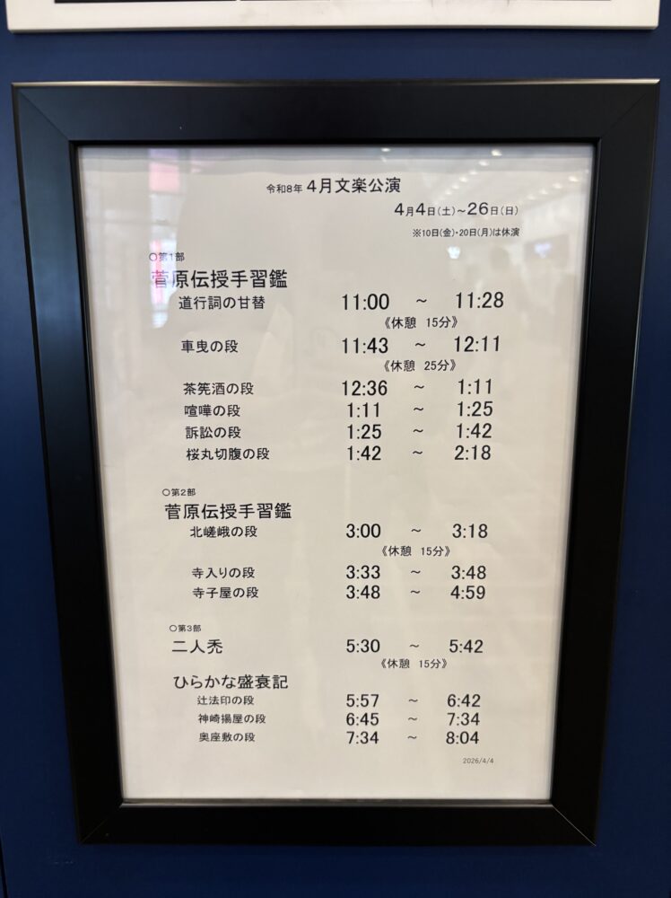国立文楽劇場の「4月文楽公演」は26日(日)までです!是非!