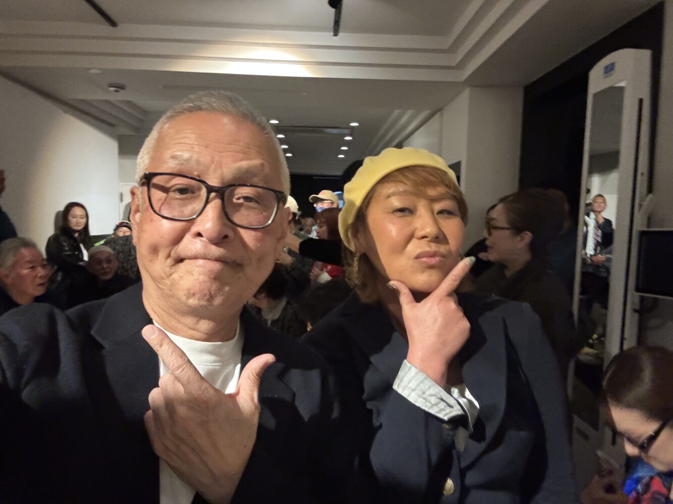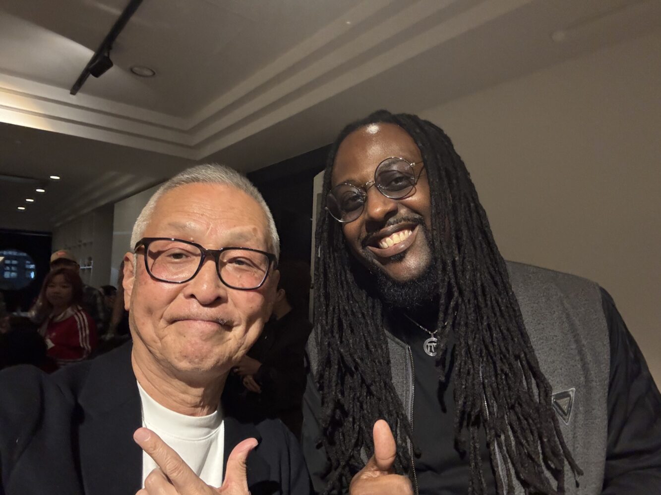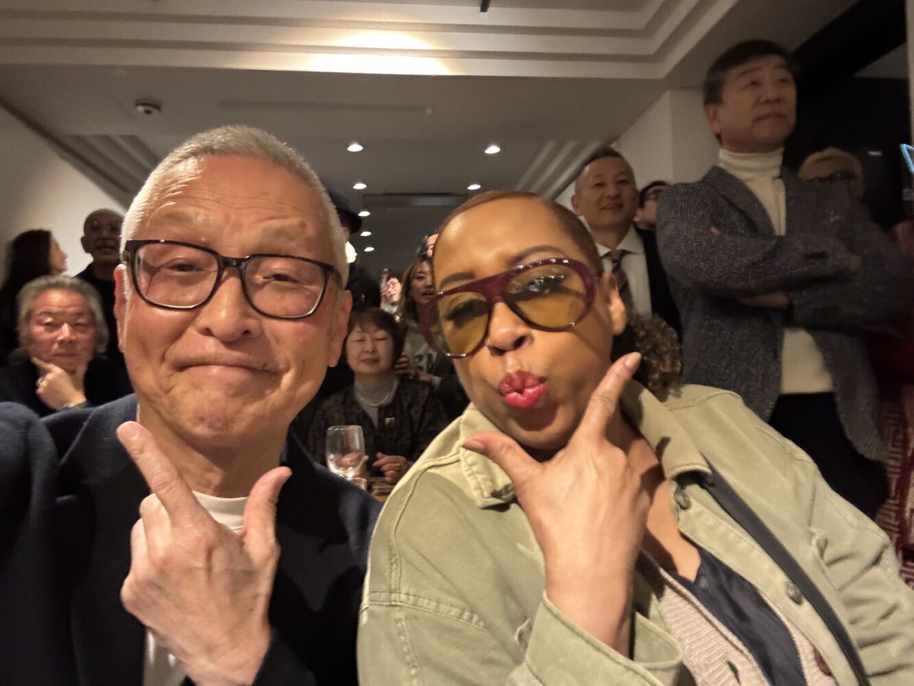 「ゴスペル教室」で、会場が一つになって歓談の時間に突入!ナイスポーズはまず、主賓の金さんと!