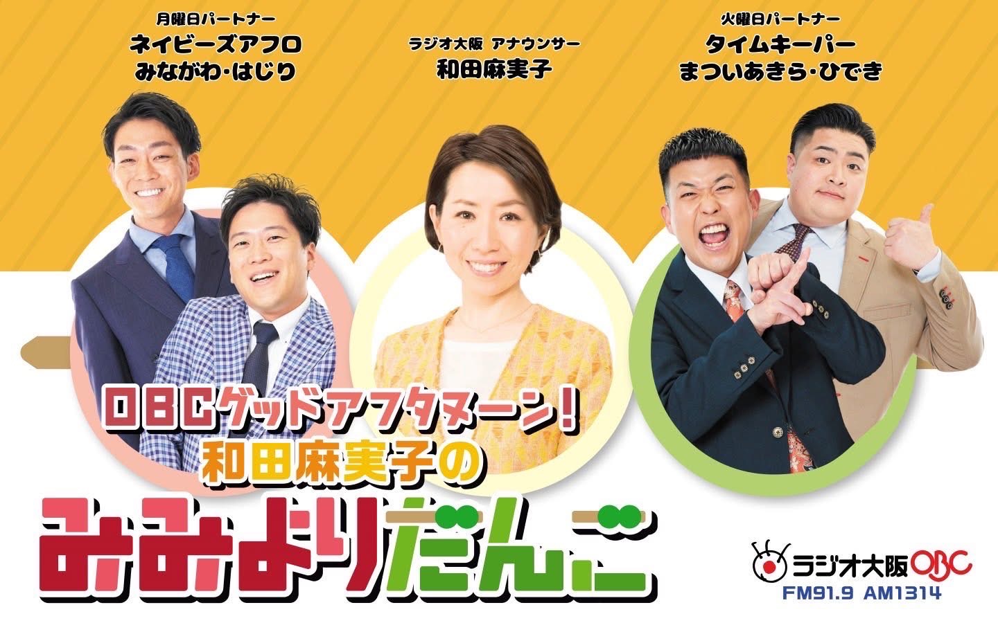 アナウンサーの和田麻美子さんと、ネイビーズアフロのお二人の三人さんの楽しい番組。