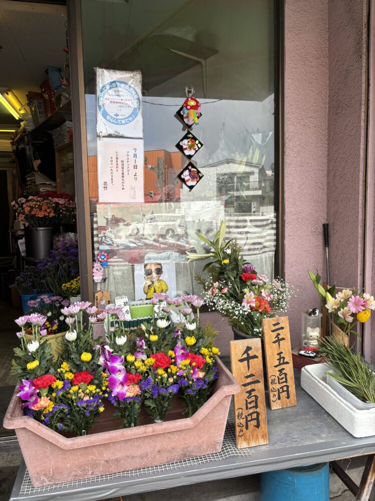 天王寺の一心寺さんに年に二回!お参りに行っています。毎回、一心寺の隣のお花屋さんで一束買って、ご本堂へ持っていって、お花を供えてお経をあげてもらって、その後、外のお花を供える場所にお供えしてきます。