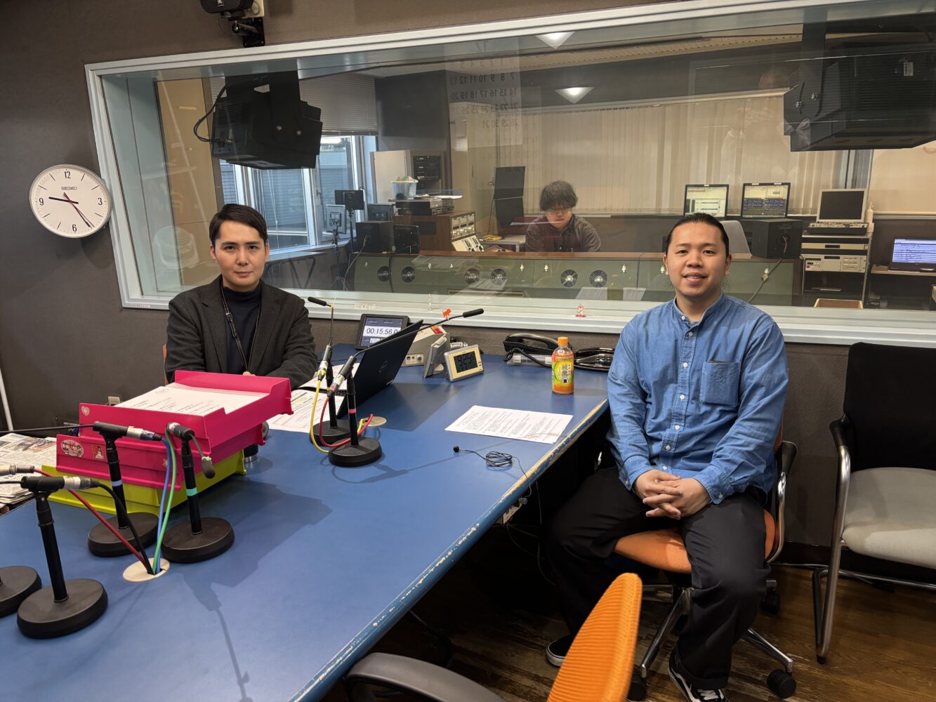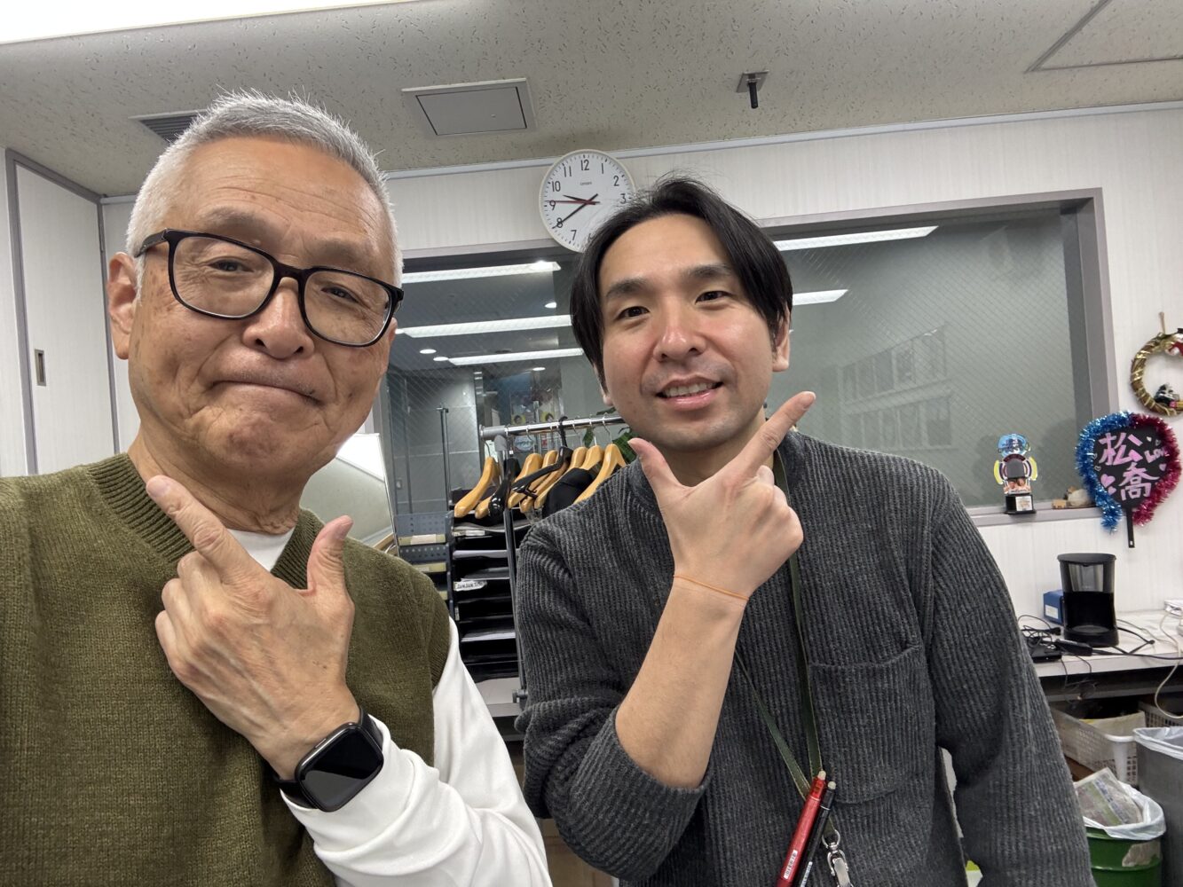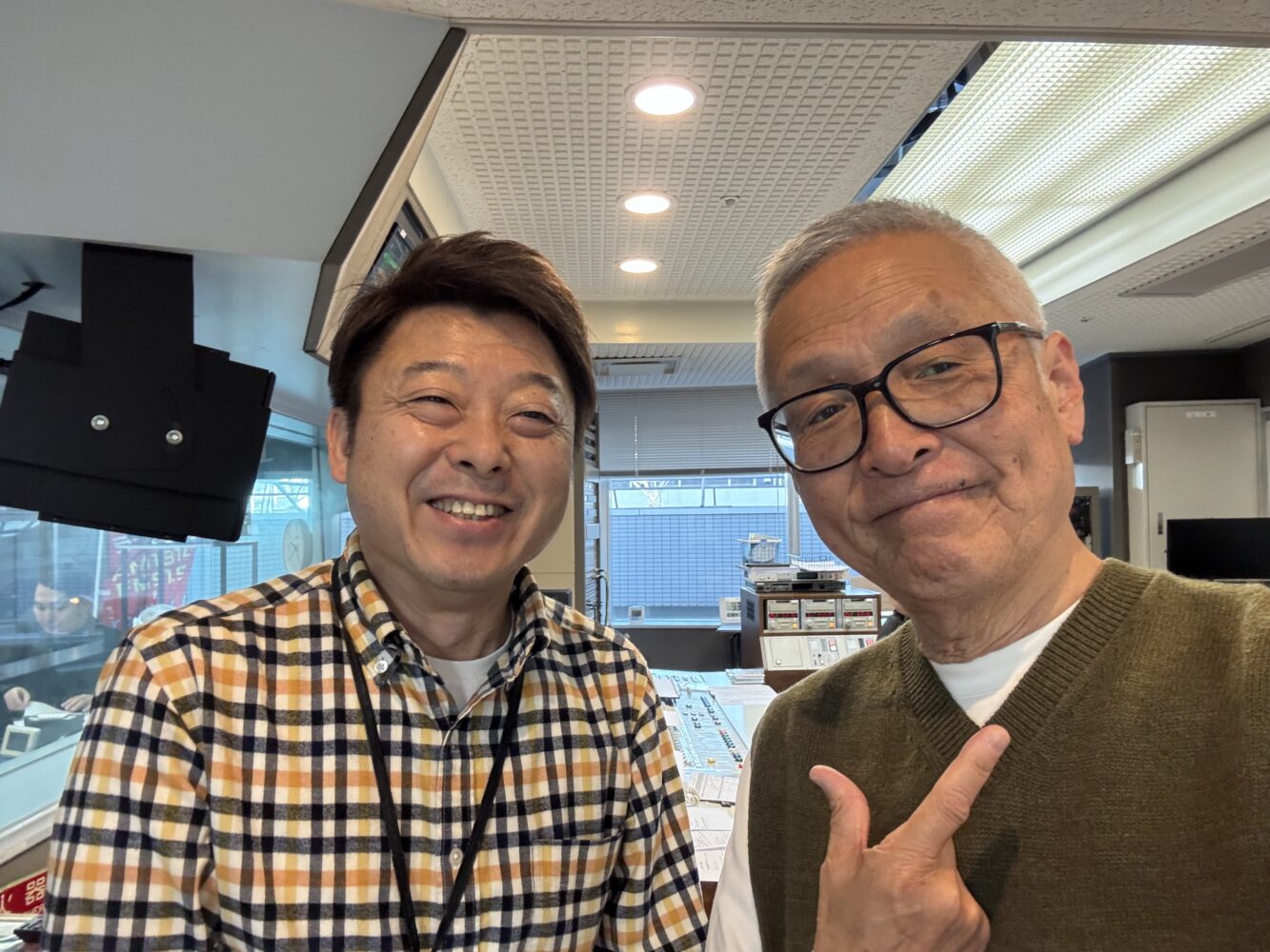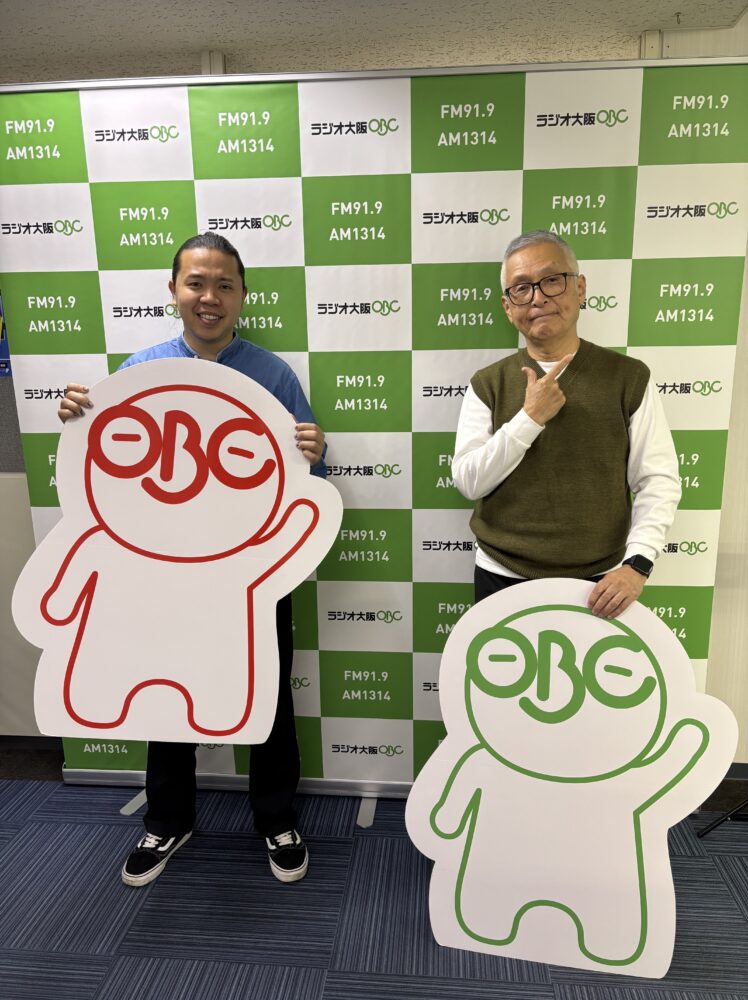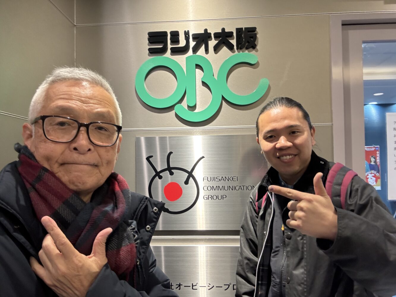 12月18日(木)京藍染師の松崎陸さんが、ラジオ大阪「藤川貴央のちょうどええラジオ」にゲスト出演させていただきました。出番は午前9時半頃からの生放送。午前9時過ぎにOBC当着。念のため(❓)二人で記念撮影(爆)