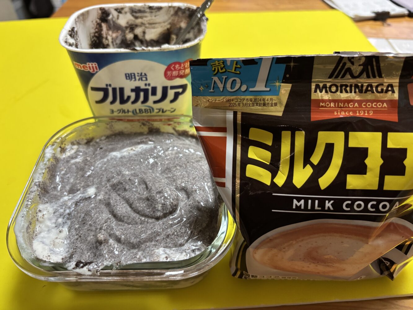 家に、甘い方のココアがあったので、振りかけてみましょう。