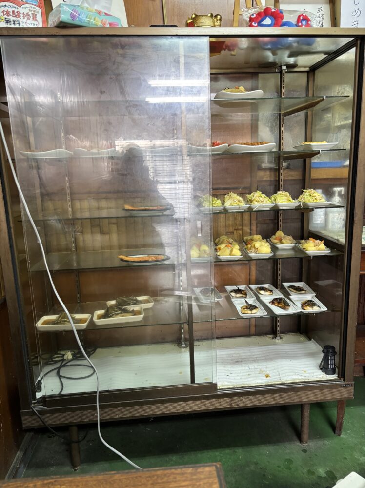 このガラスケースの中から選びます。鯖の塩焼き、キムチ野菜炒め?、肉じゃがなどありましたが私は、次の写真のをチョイス(爆)