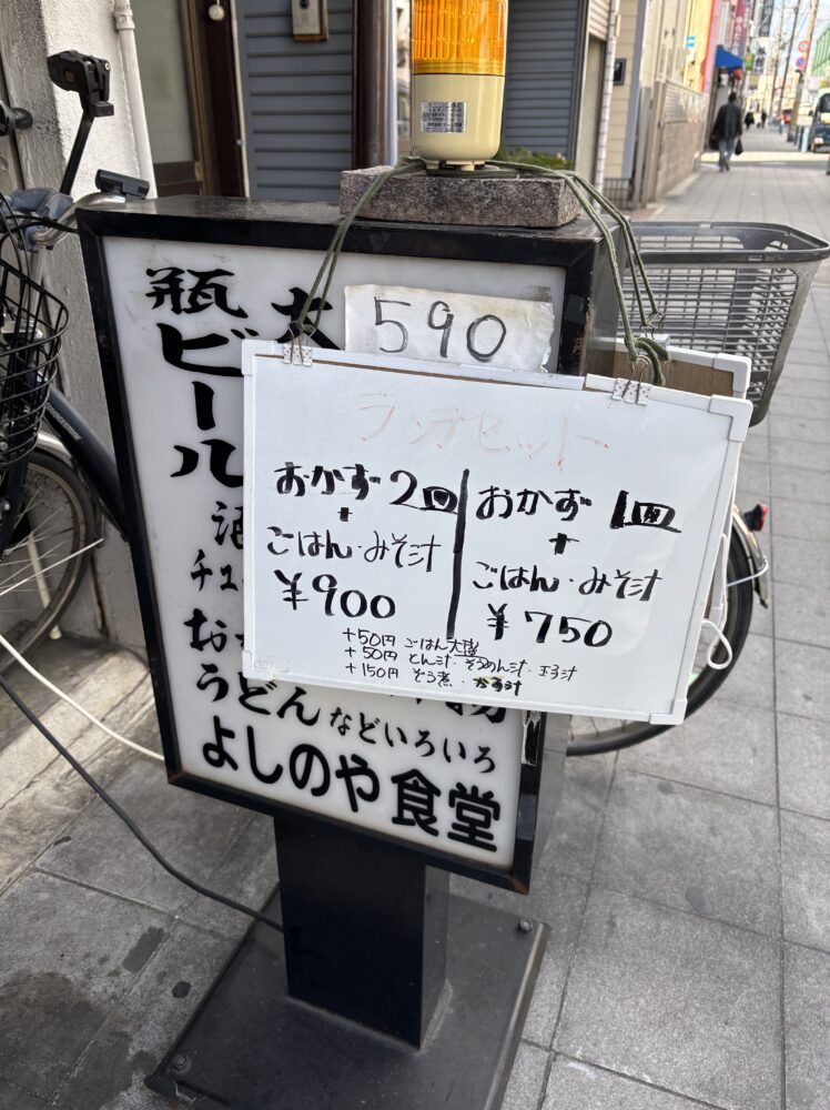 瞳孔を開く目薬さしてるので、この時、無茶眩しい。JR大正駅直近の沖縄料理店に帰り道は良く立ち寄っていましたが、最近は「Copilot」君にランチのお店は紹介してもらっていて、この日2月3日(火)は駅前の「大衆食堂よしのや」さんへ。