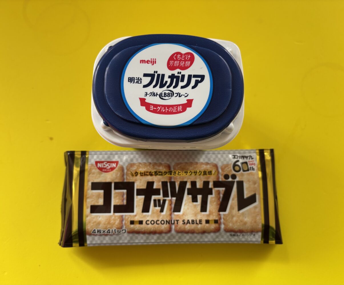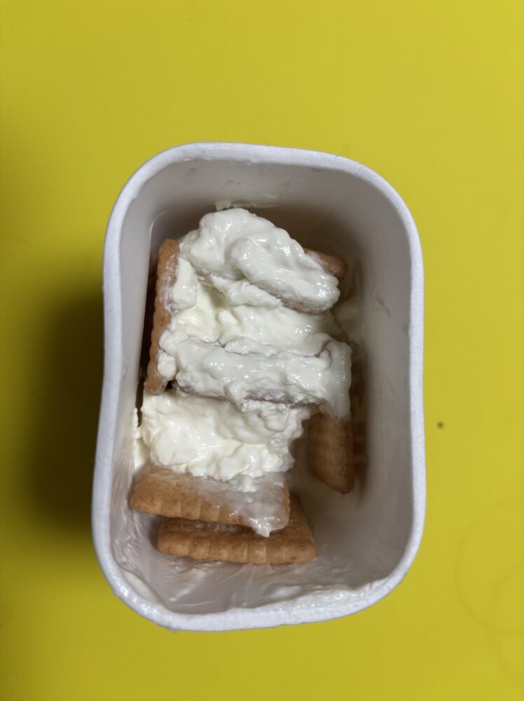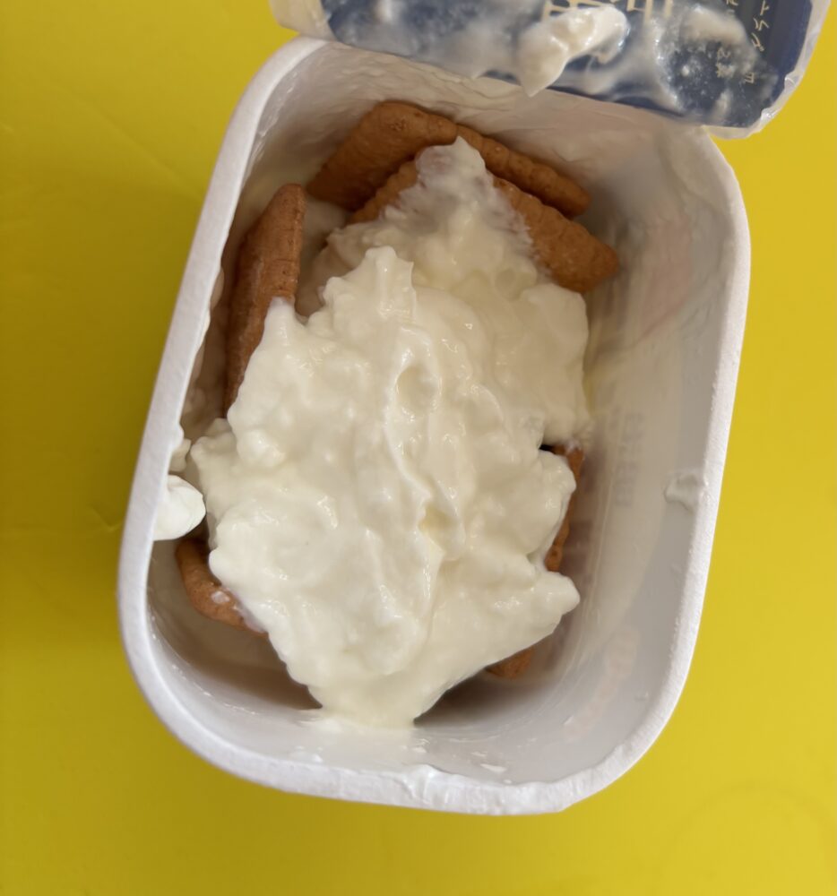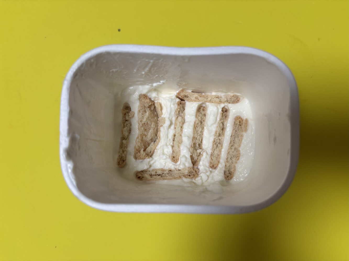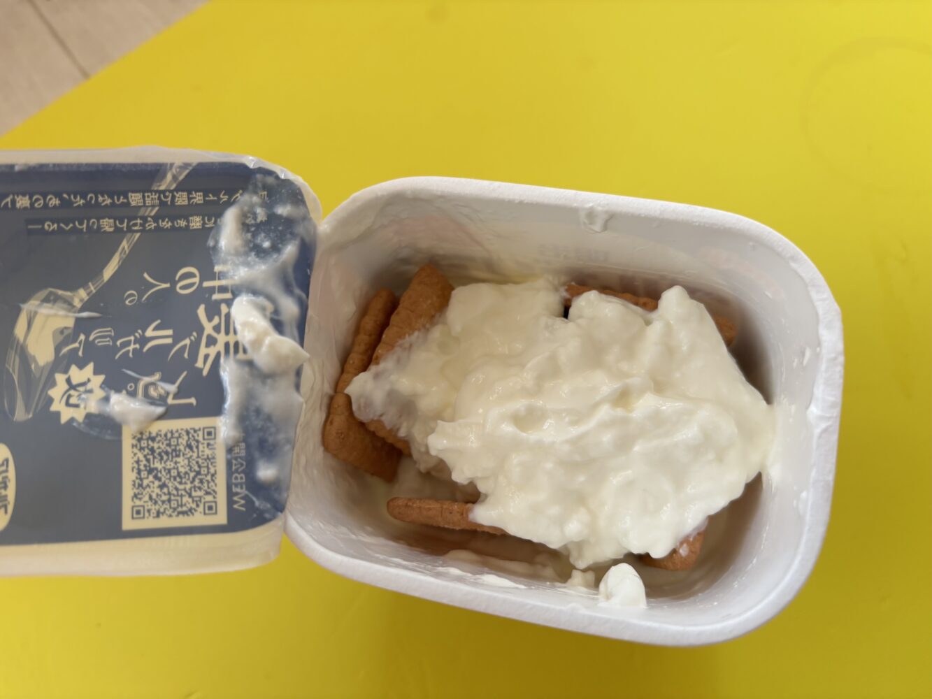 なんか、ギリシャヨーグルトとか売ってなかったので、ブルガリアヨーグルトを水切りして、そこへココナッツサブレを突っ込んで(笑)みました。